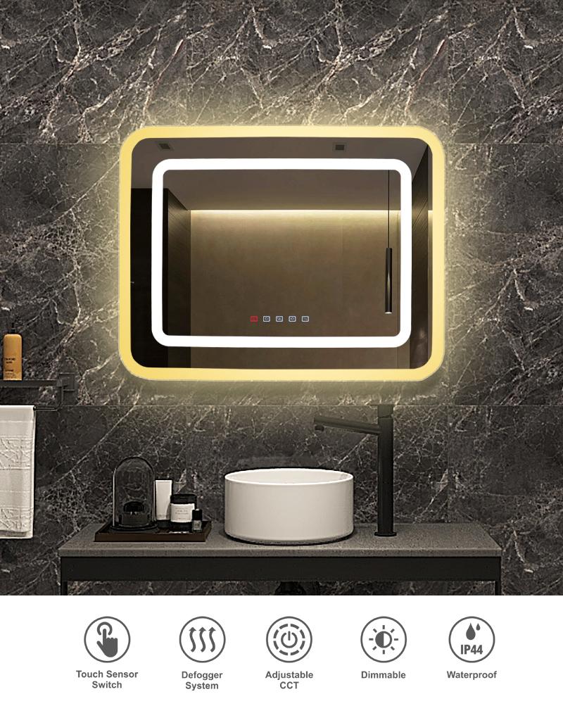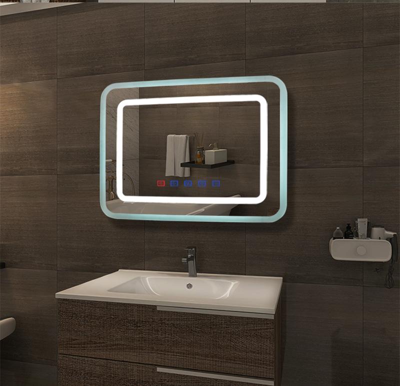 而LED智能浴室镜恰好弥补了这缺点,不但内置LED灯光作用,还能三色灯光随意切换,具备触控开关/人体感应,相互配合镜面除雾,使你洗澡完后镜面依然维持清晰不起雾。